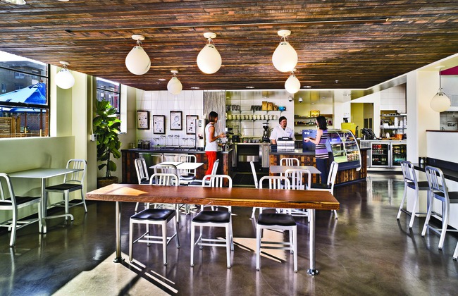 Clif Bars corporate cafe creates a welcoming space and is designed for socializing